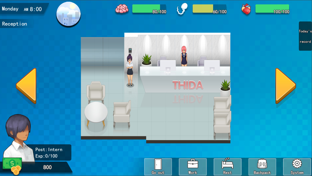Любовная игра на рабочем месте, игроки также должны сбалансировать свои собственные атрибуты с помощью работы и отдыха, хорошо распределять время, зарабатывать достаточно денег, а затем понимать потребности каждой женщины, делать ее хорошо, дарить подарки, в лучший способ повысить расположение женщин